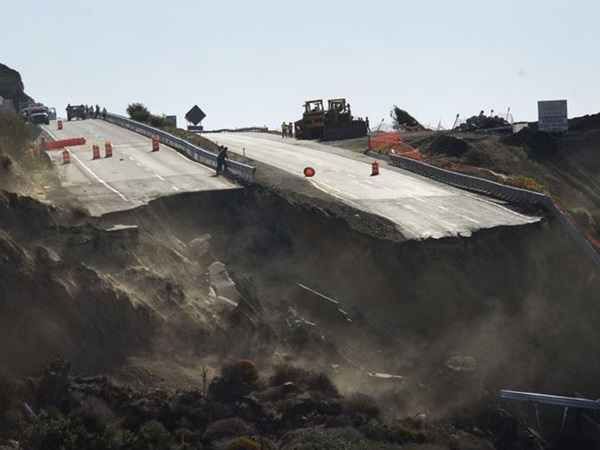ദിവസങ്ങളായി സംഭവിച്ചുകൊണ്ടിരിക്കുന്ന ഭൂമികുലുക്കങ്ങളില് റോഡിന്റെ പലഭാഗങ്ങളും ചെറിയ തോതില് തകര്ന്നു തുടങ്ങിയിരുന്നു. കടലിനോട് ചേര്ന്നാണ് ഈ പാത നീങ്ങുന്നത്.