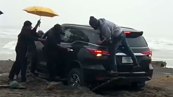 ചുവടെയുള്ള വീഡിയോയിലെ ദൃശ്യങ്ങൾ ആന്ധ്രപ്രദേശിലെ ഭീമിലി ബീച്ചിൽ നിന്നുള്ളതാണ്. ഇവിടെ മണലിൽ കുടുങ്ങിയിരിക്കുന്ന ഫോർച്യൂണർ മറ്റാരുടെയുമല്ല, ആന്ധ്രപ്രദേശ് മന്ത്രിസഭയിലെ മാനവ വിഭവശേഷി മന്ത്രി ഗന്ധ ശ്രീനിവാസ റാവുവിന്റേതാണ്. മൂന്ന് മണിക്കൂറോളമാണ് മന്ത്രിയുടെ ഫോർച്യൂണർ മണലിൽ കുടുങ്ങിയത്.