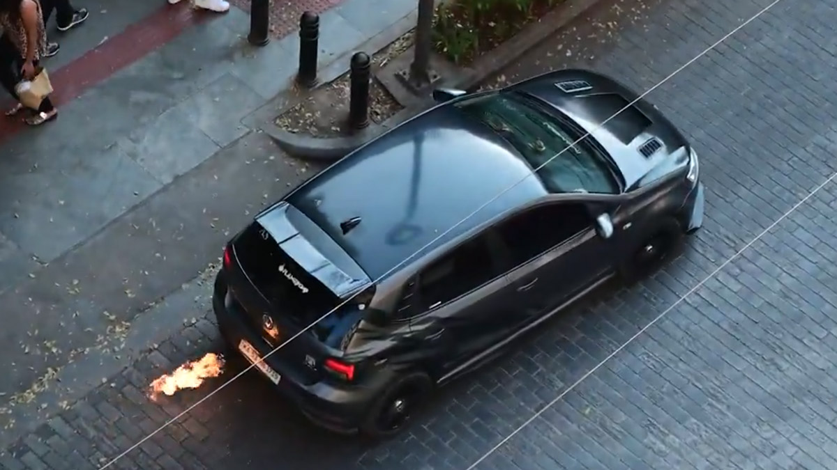 തന്റെ പോളോയുടെ ആക്സിലറേറ്റര് ശക്തമായി അമര്ത്തി എഞ്ചിന് റെവ് ചെയ്തതോടെ ആഫ്റ്റര് മാര്ക്കറ്റ് എക്സ്ഹോസ്റ്റില് നിന്ന് കാതടപ്പിക്കുന്ന ശബ്ദം വെളിയില് വന്നു. ജനങ്ങളുടെ ശ്രദ്ധ പിടിച്ചുപറ്റാന് യുവാവ് മനപൂര്വ്വം ചെയ്തതായിരുന്നു ഇതെന്നാണ് മനസ്സിലാക്കാന് പറ്റുന്നത്. വന് ശബ്ദത്തിനൊപ്പം എക്സ്ഹോസ്റ്റില് നിന്ന് തീപ്പൊരികളും പറക്കുന്നുണ്ടായിരുന്നു. ഇത് ഒരുപക്ഷേ ഒരു ഫ്രീഫേ്ലാ എക്സ്ഹോസ്റ്റ് ആയിരിക്കാം. അത്തരം എക്സ്ഹോസ്റ്റുകളില് കത്താത്ത ഇന്ധനം പലപ്പോഴും എക്സ്ഹോസ്റ്റ് സിസ്റ്റത്തിനുള്ളില് കത്തുകയും തീജ്വാലകള് സൃഷ്ടിക്കുകയും ചെയ്യും.