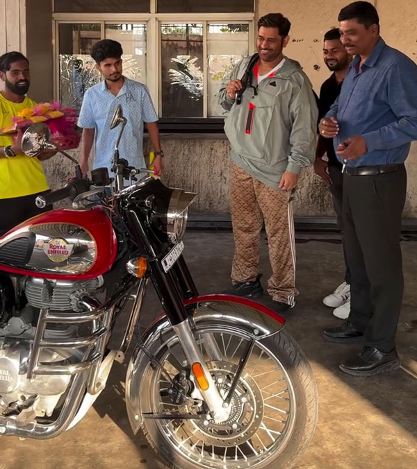 ആരാധകൻ്റെ മനസ് നിറയ്ക്കുന്നതിൽ ക്രിക്കറ്റ് ലോകത്തെ വണ്ടിപ്രാന്തനായ എം എസ് ധോണി എന്നും ഒരു പടി മുന്നിൽ തന്നെയാണ്. മോട്ടോർ സൈക്കിളുകളും കാറുകളും ഇഷ്ടപ്പെടുന്ന അദ്ദേഹത്തിന് റാഞ്ചിയിലെ ഫാം ഹൗസിൽ ഞെട്ടിക്കുന്ന ശേഖരം തന്നെയുണ്ട്. അദ്ദേഹത്തിൻ്റെ ആരാധകർ പലപ്പോഴും അവരുടെ വാഹനം അദ്ദേഹത്തിൻ്റെ അടുത്തേക്ക് കൊണ്ടുപോകുകയും ഓട്ടോഗ്രാഫ് ചെയ്യുകയും ചെയ്യുന്നു. ഒരു ആരാധകൻ്റെ പുതിയ റോയൽ എൻഫീൽഡ് ക്ലാസിക് 350 മോട്ടോർസൈക്കിൾ ധോണി ഒപ്പിട്ടതിൻ്റെ വീഡിയോ ഇപ്പോൾ സോഷ്യൽ മീഡിയയിൽ കത്തി കയറുകയാണ് . ഒപ്പിടുക മാത്രമല്ല ധോണി ആരാധകൻ്റെ മോട്ടോർ സൈക്കിൾ ആരാധകനെ ഇരുത്തി ബുളളറ്റ് ഓടിക്കുകയും ചെയ്തു