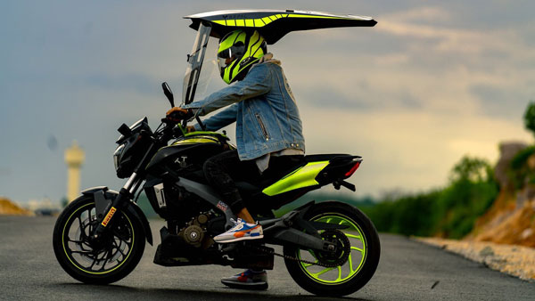 വീഡിയോയിൽ ബജാജ് ഓട്ടോയുടെ സ്പോർട്സ് ടൂറർ മോട്ടോർസൈക്കിളായ ഡൊമിനാർ 400 മോഡലിലാണ് ഈ ഷീൽഡ് ഘടിപ്പിച്ചിരിക്കുന്നത്. മുകളിൽ ഒരു മേലാപ്പുമായി സംയോജിപ്പിക്കുന്ന ഒരു ഷീൽഡ് ഉണ്ടെന്ന് കാണാൻ കഴിയും. ഇത് റൈഡറെ മഴയിൽ നിന്നും നേരിട്ടുള്ള സൂര്യപ്രകാശത്തിൽ നിന്നും സംരക്ഷിക്കും.