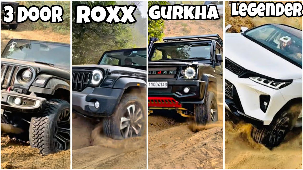 ആരാണ് മികച്ച ഓഫ്റോഡർ എന്ന ചോദ്യത്തിന് ഉത്തരങ്ങൾ പലതായിരിക്കാം, എന്നാൽ ശരിക്കും ആരായിരിക്കുമെന്ന് അറിയാൻ യൂട്യൂബർമാർ പലപ്പോഴും പല ഓഫ്റോഡ് മത്സരങ്ങൾ നടത്താറുണ്ട്. അത്തരത്തിലുള്ള ഒരു ഓഫ്റോഡ് യുദ്ധമാണ് സോഷ്യൽ മീഡിയയിൽ എല്ലാവരുടേയും ശ്രദ്ധ പിടിച്ചു പറ്റിയിരിക്കുന്നത്. മഹീന്ദ്ര ഥാർ ത്രീ ഡോർ, ഥാർ റോക്സ്, ഫോഴ്സ് ഗൂർഖ, ടൊയോട്ട ഫോർച്യൂണർ ലെജൻഡർ എന്നിവ തമ്മിലുള്ള ഈ ഓഫ് റോഡ് മത്സരത്തിൻ്റെ വീഡിയോ കാണാൻ തന്നെ രസമാണ്. ഇവയെല്ലാം നമ്മുടെ വിപണിയിൽ വിൽപനയിലുള്ള ഏറ്റവും മികച്ച ഓഫ്-റോഡിംഗ് വാഹനങ്ങളാണെന്ന് അറിയാമല്ലോ. കഴിഞ്ഞ കുറച്ച് വർഷങ്ങളായി ഇന്ത്യയിൽ ഓഫ്-റോഡിംഗ് കമ്മ്യൂണിറ്റി വർദ്ധിച്ചുകൊണ്ടിരിക്കുന്നത് കൊണ്ട് നിർമാതാക്കൾ പുതിയ മോഡലുകൾ അവതരിപ്പിക്കാൻ നിർബന്ധിതരാകുകയാണ്.