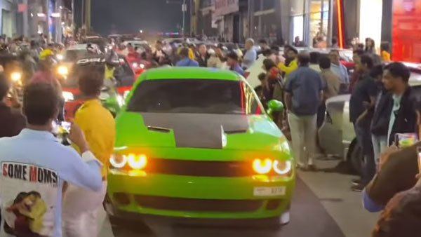 ഗതാഗതക്കുരുക്കിന്റെ കാര്യത്തില് കര്ണാടക തലസ്ഥാനം കുപ്രസിദ്ധമാണെന്നത് എല്ലാവര്ക്കും അറിയാവുന്ന കാര്യമാണ്. മെട്രോ നഗരത്തില് നിരവധി സ്പോര്ട്സ് കാറുകളും നമുക്ക് കാണാന് സാധിക്കും. ബെംഗളൂരു നഗരത്തിലെ ഒരു ഇടുങ്ങിയ നഗരവീഥിയിലാണ് ഡോഡ്ജ് ചലഞ്ചറും ചാര്ജറും ആളുകളെ ഇളക്കി മറിച്ചത്. നിയോണ് ഗ്രീന് നിറത്തിലുള്ള ചലഞ്ചറും റെഡ് ഷേഡിലുള്ള ചാര്ജറും തിരക്കേറിയ സ്ട്രീറ്റിലൂടെ സഞ്ചരിക്കവേ അവയുടെ നിറവും എക്സ്ഹോസ്റ്റ് സൗണ്ടും കാരണം തെരുവിലുള്ള ആളുകള് പെട്ടെന്ന് ശ്രദ്ധിച്ചു.