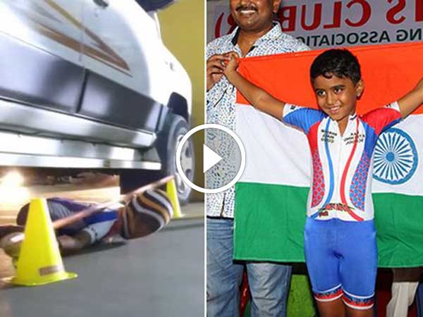 ബെംഗ്ലുരുവിൽ ഓറിയോൺ മാളിൽ വച്ച് നടത്തിയ മത്സരത്തിൽ 65.283 മീറ്ററോളം നിറുത്താതെ കാറിനടിയിൽകൂടി സഞ്ചരിക്കുക എന്ന കടമ്പകടന്നാണ് ഈ പിഞ്ചുബാലൻ റെക്കോർഡിനുടമയായത്.