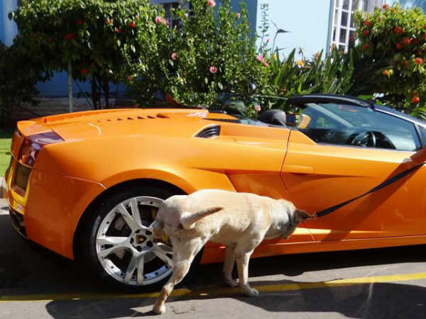 3.9സെക്കന്റ് കൊണ്ട് പൂജ്യത്തിൽ നിന്ന് 100 കിലോമീറ്റർ വേഗത കൈവരിക്കാൻ കഴിയുന്ന കാറാണ് ഗല്ലാർഡോ എന്നക്കാര്യം ഈ പട്ടിക്കറിയോ? കാറിന്റെ കളർ ഇഷ്ടപ്പെട്ടുകാണില്ലായിരിക്കും എന്നാലൊന്നു മൂത്രമൊഴിച്ചേക്കാം എന്നു കരുതികാണും.