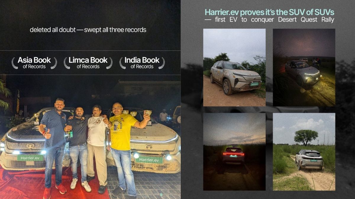 ഐതിഹാസികമായ ഡെസേര്ട്ട് ക്വസ്റ്റ് റാലിയില് പങ്കെടുക്കുകയും വിജയിക്കുകയും ചെയ്ത ഇന്ത്യയിലെ ആദ്യത്തെ ഇലക്ട്രിക് വാഹനമായി ഹാരിയര് ഇവി മാറിയതായി ടാറ്റ മോട്ടോര്സ് അറിയിച്ചു. ഇന്ത്യയില് നിന്ന് മാത്രമല്ല ഏഷ്യയില് നിന്നും ഈ നേട്ടം കൈവരിക്കുന്ന ആദ്യത്തെ ഇലക്ട്രിക് വാഹനവും ടാറ്റ ഹാരിയര് ഇവിയാണ്. ഏഷ്യ ബുക്ക്, ലിംക ബുക്ക്, ഇന്ത്യ ബുക്ക് ഓഫ് റെക്കോര്ഡുകള് ഒരേസമയം ഹാരിയര് ഇവി കടപുഴക്കിയതായി കമ്പനി വ്യക്തമാക്കി.