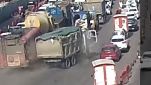 ഇടിച്ച് തെറിപ്പിച്ച് ടിപ്പറിൻ്റെ അഴിഞ്ഞാട്ടം; അപകടത്തിൻ്റെ വീഡിയോ വൈറൽ