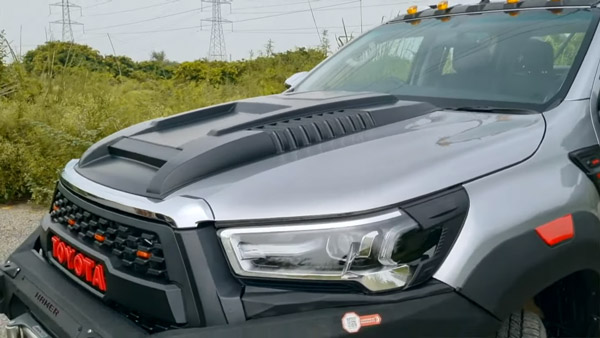 ഈ ഹൈലക്സിൽ വരുത്തിയ എല്ലാ മോഡിഫിക്കേഷനുകളും വീഡിയോയിൽ കാണിക്കുന്നുണ്ട്. ഇതിന് വേണ്ടി വിദേശത്ത് നിന്ന് ഇറക്കുമതി ചെയ്ത ആക്സസറികളാണ് ഉപയോഗിച്ചിരിക്കുന്നത്. മുൻവശത്ത് നിന്ന് ആരംഭിക്കുകയാണെങ്കിൽ ഒരു പുതിയ ബോണറ്റ് സ്കൂപ്പ് കൂട്ടിച്ചേർക്കലാണ്. ബോണറ്റിൽ തുളച്ച് ഈ സ്കൂപ്പ് ചേർത്തിട്ടില്ല. പകരം, അത് 3M ടേപ്പിൻ്റെ സഹായത്തോടെയാണ് ഒട്ടിച്ചിരിക്കുന്നത്.
