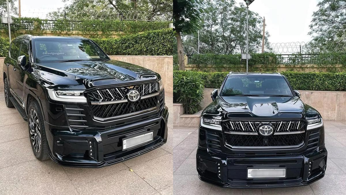 ഗുരുഗ്രാമിൽ നിന്നാണ് കറുത്ത ടൊയോട്ട ലാൻഡ് ക്രൂയിസർ LC300 ൻ്റെ നിരവധി ചിത്രങ്ങൾ പോസ്റ്റ ചെയ്തിരിക്കുന്നത്. വാൾഡ് ഇന്റർനാഷണലിന്റെ ബ്ലാക്ക് ബൈസൺ ബോഡി കിറ്റാണ് ഉപയോഗിചിരിക്കുന്നത്. ഈ ആഫ്റ്റർ മാർക്കറ്റ് ബോഡി കിറ്റ് ലാൻഡ് ക്രൂയിസർ LC300-ന്റെ ലുക്ക് വർദ്ധിപ്പിച്ചിട്ടുണ്ട് എന്ന കാര്യത്തിൽ ഒരു സംശയവുമില്ല. മുൻവശത്ത് നോക്കുകയാണെങ്കിൽ, വാൾഡ് ബ്ലാക്ക് ബൈസൺ കിറ്റ് ഘടിപ്പിച്ച ഈ ടൊയോട്ട ലാൻഡ് ക്രൂയിസർ LC300, മുകളിലും താഴെയുമുള്ള രണ്ട് ഭാഗങ്ങളിലും ഡയഗണൽ സ്പൈക്കുകളുള്ള ഒരു കറുത്ത തീമിലാണ് ഗ്രില്ലുളളത്.
