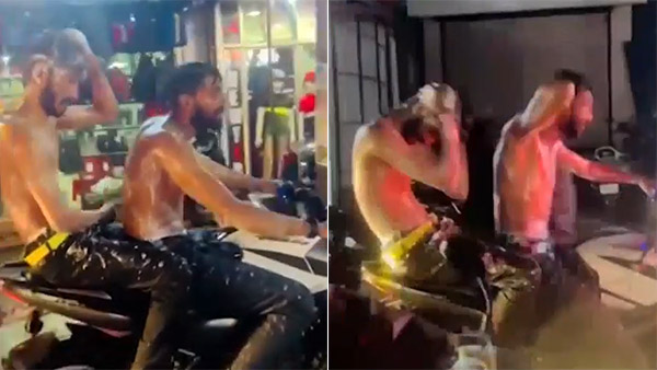 ബൈക്കില് സഞ്ചരിക്കുമ്പോള് മഴ പെയ്താല് കോട്ട് എടുക്കാത്ത ആളുകള് നനഞ്ഞു കുളിക്കും. എന്നാല് അത്തരം ഒരു സാഹചര്യത്തില് സോപ്പ് തേച്ച് ശരിക്കും അങ്ങ് കുളിച്ചാലോ. ഇത്തരത്തില് ബൈക്കില് സഞ്ചരിക്കവെ സോപ്പ് തേച്ച് കുളിച്ച രണ്ട് യുവാക്കള് പൊലീസ് പിടിയിലായി.