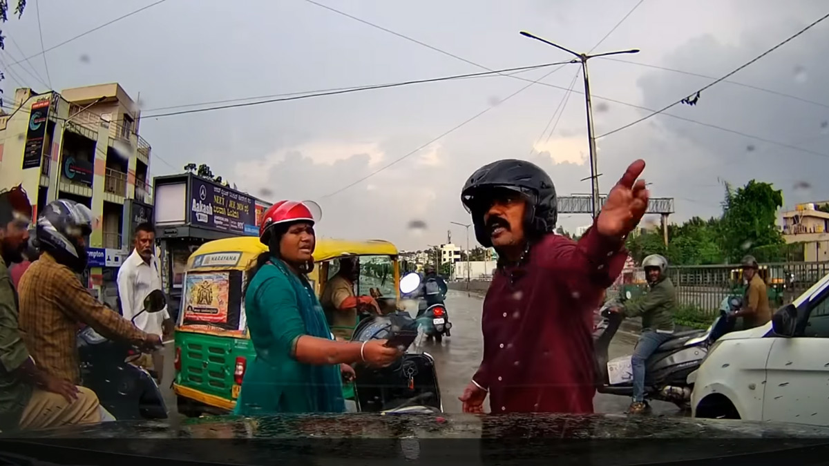 ഒരു മേൽപ്പാലത്തിന് സമീപം എത്തുമ്പോൾ വലിയ വെള്ളകെട്ടിലേക്ക് കാർ പോകുന്നതും പെട്ടെന്ന് വേഗത കൂട്ടുകയും വശങ്ങളിലുളള ബൈക്ക് യാത്രക്കാരുടെ ദേഹത്തേക്ക് വെള്ളം തെറിക്കുന്നതും കാണാം. പെട്ടെന്ന് ഇരുചക്രവാഹനക്കാർ ബഹളം വയ്ക്കുകയും വാഹനം നിർത്താൻ ആവശ്യപ്പെടുകയും ചെയ്തെങ്കിലും കാർ ഡ്രൈവർ വണ്ടി നിർത്തിയില്ല. എക്സ്ഹോസ്റ്റിൽ വെള്ളം കയറാതിരിക്കാനാണ് താൻ വേഗത്തിൽ നീങ്ങിയതെന്ന് ഡ്രൈവർ പറയുന്നത് കേൾക്കാം.