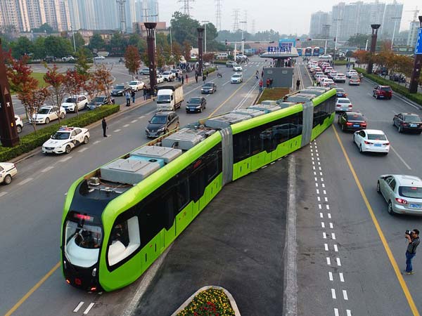 ചൈനീസ് നഗരമായ സുസൊയില് വെച്ചാണ് ട്രാക്ക്-ലെസ് ട്രെയിനിനെ അധികൃതര് പരീക്ഷിച്ചത്. 'വിര്ച്വല്' (സാങ്കൽപിക) ട്രാക്കുകളുടെ പശ്ചാത്തലത്തിലാണ് ട്രെയിന് റോഡിലൂടെ സഞ്ചരിക്കുക.
