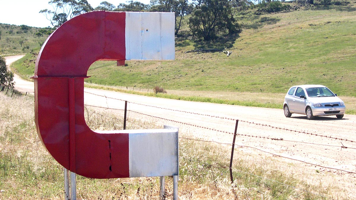 ദക്ഷിണ ഓസ്ട്രേലിയ: തെക്കൻ ഓസ്ട്രേലിയയിലെ ബ്ലാക്ക് റോക്കിന് സമീപം സ്ഥിതി ചെയ്യുന്ന ഒറോറൂയിലെ മാഗ്നറ്റിക് ഹിൽ വാഹനങ്ങൾ കുന്നിൻ മുകളിലേക്ക് തന്നെ കയറിപോവുന്നതിന് പ്രശസ്തമായൊരു സ്ഥലമാണ്. ഇവിടുത്തെ പ്രതിഭാസം ലഡാക്കിൽ കാണുന്നതുപോലുള്ള ഒരു ഒപ്റ്റിക്കൽ മിഥ്യ തന്നെയാണ്. റോഡ് യഥാർഥത്തിൽ കുന്നിന് താഴെയാണ്. പക്ഷേ അത് കുന്നിൻ മുകളിലേയ്ക്ക് പോകുന്നതായാണ് തോന്നുന്നത്. അതുതന്നെയാണ് ഇവിടുത്തെ പ്രത്യേകത.