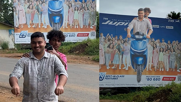 അപ്പോൾ തന്നെ ഷോറൂമിൽ എത്തി ഹെൽമറ്റ് ധരിച്ച് കൊണ്ട് ചിത്രം എടുക്കുകയും ടിവിഎസിന് മെയിൽ ചെയ്ത് കൊടുക്കുകയും ചെയ്തു. വയനാടിനെ തന്നെ ഞെട്ടിച്ച് കൊണ്ടാണ് ഇവരുടെ ചിത്രമുളള വലിയ പരസ്യബോർഡ് സ്ഥാപിച്ചത്. അതിൻ്റെ മുന്നിൽ നിന്ന് കൊണ്ട് വീണ്ടും റീൽ എടുക്കുകയും അത് വീണ്ടും വൈറലാകുകയും ചെയ്തു. ടിവിഎസ് ജുപ്പീറ്ററായിരുന്നു പരസ്യ ബോർഡിൽ ഉണ്ടായിരുന്നത്.