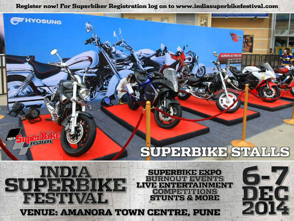 സൂപ്പര്ബൈക്ക് എക്സ്പോ, ബേണ്ഔട്ട് ഇവന്റ്, സ്റ്റണ്ടുകള്, ലൈവ് പ്രകടനങ്ങള് തുടങ്ങിയ നിരവധി പരിപാടികള് ഇന്ത്യ സൂപ്പര്ബൈക്ക് ഫെസ്റ്റിവലില് നടക്കും. പൂനെയിലെ അമനോര സെന്ററിലാണ് പരിപാടി സംഘടിപ്പിക്കുന്നത്.