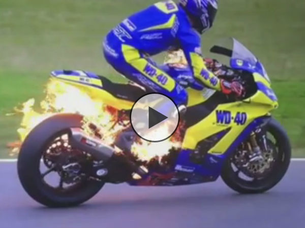 ഇവിടെ, ബ്രിട്ടിഷ് റൈഡറായ ടെയ്ലര് മാക്കെന്സിക്ക് സംഭവിച്ചത് ഇതാണ്. റൈഡിനിടയില് ബൈക്കിന് തീപ്പിടിച്ചു. കാവസാക്കി ബൈക്കാണ് ഇദ്ദേഹം ഓടിച്ചിരുന്നത്. അവസരത്തിന് അദ്ദേഹം ബൈക്കില് നിന്നെടുത്തു ചാടിയതിനാല് തടികെടാകാതെ രക്ഷപെട്ടു. താഴെ വീഡിയോ കാണുക.