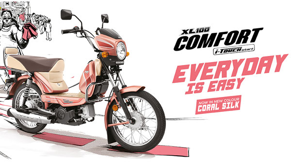 ടിവിഎസ് XL100 കംഫര്ട്ട് ഐ-ടച്ച്സ്റ്റാര്ട്ടിലേക്കുള്ള ഈ പുതിയ കോറല് സില്ക്ക് നിറം പോസിറ്റീവിറ്റിയും ശുഭാപ്തിവിശ്വാസവും സൂചിപ്പിക്കുന്നുവെന്നും കമ്പനി വ്യക്തമാക്കുന്നു. ഈ പുതിയ പതിപ്പിന് 41,139 രൂപ മുതല് 52,343 രൂപ വരെയാണ് എക്സ്ഷോറൂം വില.