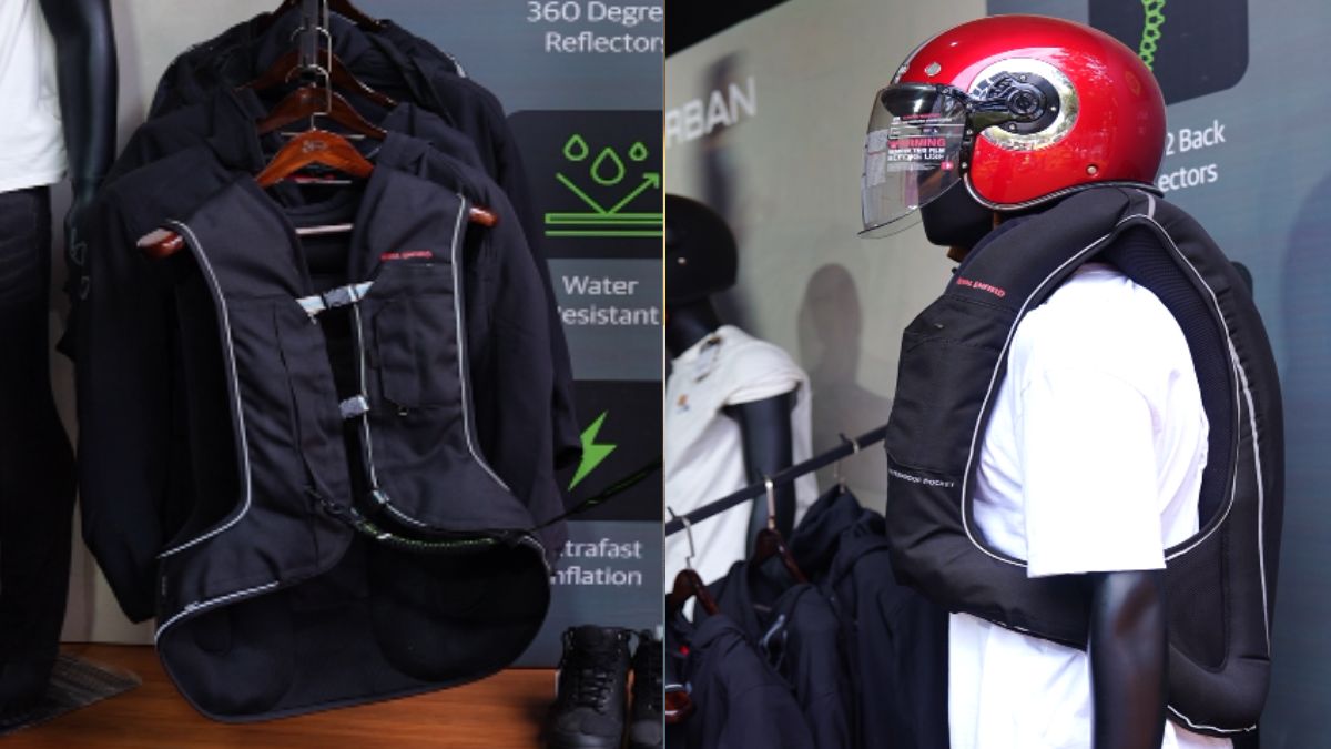 ഇതില് ഏറ്റവും ശ്രദ്ധേയമായത് ഇരുചക്രവാഹന യാത്രികര്ക്കായി ലഭ്യമാക്കിയ 'എയര്ബാഗ് വെസ്റ്റ്' (Airbag Vest) ആണ്. 35000 രൂപയാണ് ഇതിന് വില നിശ്ചയിച്ചിരിക്കുന്നത്. വാഹനം മറിയുമ്പോള് എയര്ബാഗ് യാത്രികന ചുറ്റും വികസിക്കുകയും അവരെ സംരക്ഷിക്കുകയും ചെയ്യും. റൈഡര്മാര്ക്ക് അധിക സുരക്ഷ നല്കുകയാണ് ഈ എയര്ബാഗ് വെസ്റ്റിന്റെ ധര്മം. എളുപ്പത്തില് മാറ്റിവെക്കാവുന്നതുമായ കാട്രിഡ്ജുകളുമായാണ് ഇത് വരുന്നത്. കടകളില് എളുപ്പത്തില് ലഭ്യമാകുന്ന ഈ കാട്രിഡ്ജുകള്ക്ക് 2000 രൂപയാണ് വില.