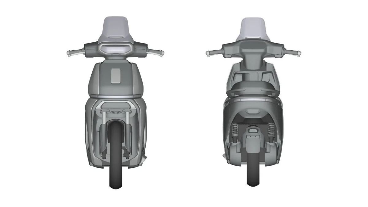 മുന്വശത്ത് എല്ഇഡി ഡേടൈം റണ്ണിംഗ് ലാമ്പുകളുമായി സംയോജിപ്പിച്ച ഒരു പുതിയ എല്ഇഡി ഹെഡ്ലാമ്പ് ഉണ്ടാകും. ഇത് ഐക്യൂബിനെ അനുസ്മരിപ്പിക്കുന്ന ഒരു ഫാമിലി സ്കൂട്ടര് ലുക്ക് നല്കുന്നു. എക്യൂബ് വളരെ ബോക്സിയും അപ്റൈറ്റ് സ്റ്റാന്സുമായിട്ടാണ് വരുന്നതെങ്കിലും പുതിയ സ്കൂട്ടറിന്റെ പേറ്റന്റ് ചിത്രങ്ങള് ഡിസൈന് പേറ്റന്റ് നേടിയ സ്കൂട്ടറില് സ്മൂത്ത് ലൈനുകളും മുന്വശത്തെ ഫ്ലോര്ബോര്ഡ് മുതല് പിന്ഭാഗം വരെ നീളുന്ന എയറോഡൈനാമിക് പാനലുകളും കാണാം.