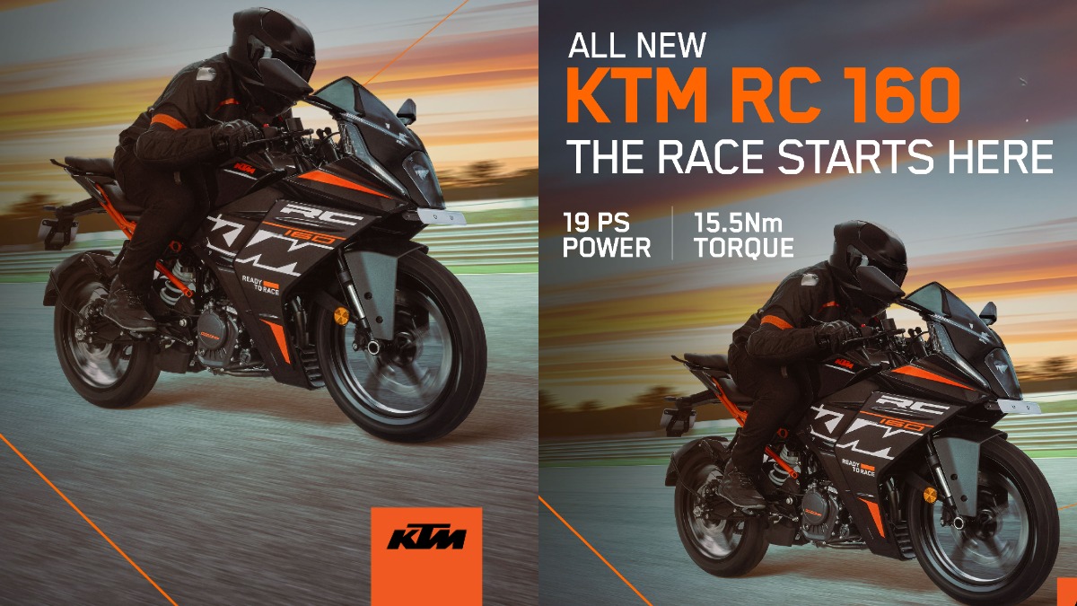 ഒപ്പം റെഡി ടു റേസ് സ്റ്റിക്കറുകൾ സൈഡ് ഫെയറിംഗിൽ കാണാം. ഓറഞ്ച് ട്രെല്ലിസ് ഫ്രെയിം, 17 ഇഞ്ച് ബ്ലാക്ക് അലോയ് വീലുകൾ എന്നിവയാണ് പുതിയ കെടിഎം RC 160 മോഡലിൻ്റെ രൂപത്തെ ആകർഷകമാക്കുന്നത്. സ്പോർട്ടി സ്പ്ലിറ്റ് സീറ്റുകൾ, ക്ലിപ്പ്-ഓൺ ഹാൻഡിൽബാറുകൾ, റിയർ-സെറ്റ് ഫുട്പെഗുകൾ, പ്രീമിയം സ്വിച്ച് ഗിയർ, ഫെയറിംഗ് മൗണ്ടഡ് ORVM-കൾ, USD ഫ്രണ്ട് ഫോർക്കുകൾ തുടങ്ങിയവയാണ് മറ്റ് ശ്രദ്ധേയമായ ഘടകങ്ങൾ.
