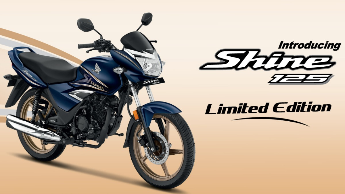 പേൾ സൈറൺ ബ്ലൂ കളർ ഓപ്ഷനിൽ വാഗ്ദാനം ചെയ്യുന്ന ഈ മോട്ടോർസൈക്കിൾ പൈറൈറ്റ് ബ്രൗൺ ഫിനിഷ്ഡ് അലോയ് വീലുകളും അവതരിപ്പിക്കുന്നുണ്ട്. ഇത് കൂടുതൽ പ്രീമിയവും പക്വവുമായ രൂപം ഹോണ്ട ഷൈൻ 125 ലിമിറ്റഡ് എഡിഷന് നൽകുന്നുണ്ട്. . കടും നീല നിറത്തിലുള്ള ബോഡി പാനലുകളും ഫ്യുവൽ ടാങ്കിലെ യുണീക് ഷൈൻ ഗ്രാഫിക്സും വല്ലാത്തൊരു ആകർഷണമാണ് സമ്മാനിക്കുന്നത്. പുതുക്കിയ സ്റ്റൈൽ ഫ്രണ്ട് വൈസർ, സൈഡ് കവർ, റിയർ കൗൾ എന്നിവയിലേക്ക് വ്യാപിക്കുന്നതായും കാണാം.